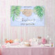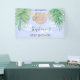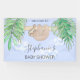 Banner de Baby Shower de Cine Blue Baby Boy Sloth. Esta bonita pancarta está decorada con una acuarela de una feliz pereza de bebé colgada de una rama, enmarcada con hojas verdes de la jungla y nubes sobre un fondo azul. Todo el texto es personalizable. Acuarela original © Michele Davies.