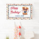 The cheerful "Happy Birthday" script and personalized name in the center make it a standout decoration for any 4th of July birthday celebration. The charming border pattern of top hats, cupcakes, and rockets ties the whole party theme together beautifully.