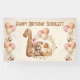 Caer antes del primer cumpleaños, cartel de fiesta con un adorable oso de peluche en un gorra rosa, calabazas, globos y un gran número de madera para niñas. Personaliza fácilmente el texto. Visita la tienda para ver la línea completa de productos disponibles - Kate Eden Art