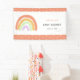 Banner de la señal de bienvenida de la ducha con arco iris de melocotón. Pancarta de bienvenida con una ducha de bebé sencilla y elegante. Diseñado por Kristine Lee Designs. Para obtener más información, visite www.kristineleedesigns.com