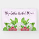 Despedida de soltera con temática de jardín con dahlias blancas, frambuesas y ramitas de menta con tipografía script morada