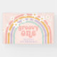 Moda de inspiración retro con un cartel de primer cumpleaños con arcoiris pastel de estilo hippie y margaritas