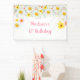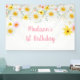 Esta bonita pancarta incluye daisies acuarelas con confetti de Relieve metalizado de oro falso.