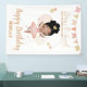 Cumpleaños! Danza y torbellino festivo, Princesa Ballerina con pancarta de purpurina brillante y arco, estrellas y remolinos.