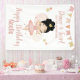 ¡Feliz cumpleaños! Festiva Dance & Twirl, Princesa Ballerina con tiara y brillante pancarta purpurina, estrellas y remolinos.