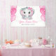 Personalizable acuarela Bebé elefante lindo con Rótulo de fondo/pancarta de arco rosado para Baby Shower, cumpleaños.