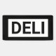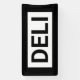 Cartel de la firma Deli. Sencillo negro sobre blanco con un borde negro grueso. Alta visabilidad.