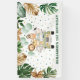 Este bonito diseño presenta un adorable ilustracion acuático de animales de safari y exuberante vegetación tropical en verde y dorado. Los campos de texto son completamente editables. Puede cambiar la redacción para que se ajuste a su evento, por ejemplo, cumpleaños, ducha de bebé / salpicadura, bautismo, bautismo, bautismo, día de nombres, etc