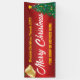 Feliz banner navideño sobre fondo rojo brillante con árbol y campanas. Editar todo el texto. Ideal para un desfile de Navidades o para una exhibición de una tienda.