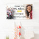 Diga adiós y muestre su agradecimiento a un maestro que se va o se jubila con esta pancarta personalizada de despedida que presenta dos fotos personalizadas. Agregue el nombre del maestro y la escuela, junto con un mensaje sincero (el ejemplo dice "Gracias por inspirar a mentes jóvenes") para crear un letrero cálido que exprese su gratitud. Perfecto para entradas, telones de fondo para fotos o mesas de fiesta. Para cambiar la ubicación de la foto: haga clic en el botón para editar el diseño, haga clic en "recortar" y mueva la imagen.