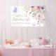 Bandera horizontal para despedida de soltera "Toda una vida de mariposas". Agregue un toque de romántico caprichoso a su despedida de soltera con esta encantadora bandera horizontal, perfecta para una celebración temática de "Toda una vida de mariposas". La obra de arte presenta una delicada mezcla de flores silvestres en acuarela y vegetación, con múltiples mariposas rosadas y moradas revoloteando a través del diseño. La paleta de colores incluye rosados pálidos, rosa polvoriento, lila, lavanda, violeta y verdes frescos para un aspecto suave inspirado en el jardín.