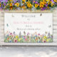 Celebre y dé la bienvenida a sus invitados a la despedida de soltera con este banner de bienvenida veraniego y moderno de flores silvestres. Cuenta con un campo de colores brillantes de delicadas flores silvestres con mariposas, abejorros y mariquitas. Personalice todo el texto y la ubicación de los gráficos según sea necesario.
