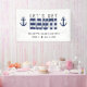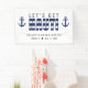 Estandarte de rayas azules y blancas "vamos a ser traviesos" para una fiesta de soltero / soltera. Personalízalo con tu propio texto.
