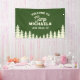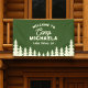 La pancarta de bienvenida de campamento de soltera en verde para un fin de semana de viaje de chicas en un destino de glamping establece un ambiente instantáneo de "Camp Bride" y ayuda a los invitados a encontrar el campamento base en cuanto lleguen. Diseñada para cabañas, casas de lago, cabañas de montaña, campamentos y alquileres de parques nacionales, esta pancarta personalizada presenta el nombre del campamento y la ubicación de la futura novia para que puedas personalizar la escapada para tu despedida de soltera en un destino. Úsala en la entrada del lodge, la puerta de la casa de huéspedes, el pabellón del campamento, la barandilla del porche o la mesa de registro para saludar a la tripulación, marcar puntos de encuentro y anclar el tema de tu aventura rústica para excursiones, días en barco, paradas en bodegas y noches de fogata acogedoras. La obra de arte al aire libre y la tipografía clásica de campamento se sienten como en casa con el lago, el río, la tienda, las montañas y el ambiente de fogata, y se coordina sin esfuerzo con invitaciones, favores y decoraciones a juego para un conjunto coherente. Perfecta para una despedida de soltera en un campamento de montaña o un fin de semana relajado de chicas en un lago, esta