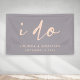 Un diseño boda elegante con escritura manuscrita tipografía "I do", emparejada con un título tipográfico moderno y nombres de novios y novios en rosa rosa rubor sobre un suave fondo gris lila. ¡El diseño perfecto para su día especial!