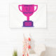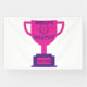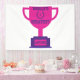 Este banner presenta las palabras "La mejor madre del mundo" mostrando una fuente negrita de anuario con letras moradas más una corona de ganador con el número 1 en el centro sobre un trofeo de estilo plano de color rosa sobre una base morada en este tema del Día de la Madre. Este banner tiene impresión en un solo lado, medidas de seguridad para exteriores de 4 "x6", está hecho con un acabado mate elegante y es resistente a la decoloración y roturas para uso en interiores o exteriores, ideal para anunciar cualquier cosa, desde cumpleaños hasta graduaciones, bodas y aniversarios. Bordes doblados y soldados térmicamente para un acabado limpio. Los banners para exteriores se pueden comprar con ojetes metálicos.