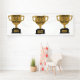 Esta pancarta presenta las palabras "El mejor padre del mundo" mostrando una fuente en negrita de libro anual con letras negras más una corona de ganador con el número 1 en el centro sobre un trofeo de copa plana de color dorado sobre una base negra en este tema del Día del Padre. Esta pancarta tiene medidas de impresión de un solo lado seguras para exteriores de 4 "x12", está hecha con un acabado mate elegante y es resistente tanto a la decoloración como a los desgarros para uso en interiores o exteriores, excelente para anunciar cualquier cosa, desde cumpleaños hasta graduaciones, bodas y aniversarios. Bordes con dobladillo y soldados térmicamente para un acabado limpio. Las pancartas exteriores se pueden comprar con ojetes metálicos.