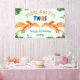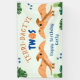 Divertido banner fiesta de 2 años de dinosaurio con combinación de colores azul verde y naranja y tema safari. Personalízalo con los detalles de tu evento. Diseño unisex para un niño o chica.
