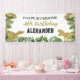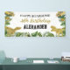 Sumérjase en su pequeña aventura prehistórica con nuestro banner de cumpleaños Dinosaur. Este banner es perfecto para agregar un toque divertido y único a la celebración de cumpleaños de su hijo, creando un inolvidable fiesta con temas de dinosaurios. Nuestro banner de cumpleaños de Dinosaur mide aproximadamente 1,50 m por 1,8 m, proporcionando una presencia dominante que instantáneamente llama la atención. El tamaño es ideal para colgarse en la entrada, adornar la mesa fiesta o como telón de fondo para las fotos. La pancarta presenta vibrantes gráficos de dinosaurios que cautivarán la imaginación de tu pequeño. Desde el poderoso T-Rex hasta el veloz Raptor, este banner trae el fascinante mundo de los dinosaurios a su fiesta.
