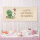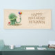 El dinosaurio está listo con globos y un buen ambiente fiesta para la fiesta de cumpleaños.