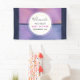 Banner fiesta con un fondo moderno y elegante. Los colores rosa y violeta giran alrededor creando un elegante efecto gradiente. Un círculo blanco se cubrió por encima con el texto dentro.