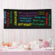 Qué banner único y divertido para un Fiesta de Jubilación. El texto personalizado se repite en diferentes fuentes y colores en un fondo negro.