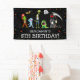 Un banner de cumpleaños súper divertido para los nacidos en octubre - un Fiesta de disfraces de Halloween! Con fondo negro, confeti de estrellas coloridas, personajes de disfraces de disfraces de disfraces de personalizados, fantasmas, monstruos, etc. Personaliza con el nombre y la edad del niño de cumpleaños.