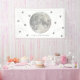 Esta moda y la moderna pancarta "Two the Moon" (Dos la luna) del niño de 2º / 2º cumpleaños presenta un fondo blanco con una gran luna llena de imitación de plata y falsas estrellas de plata. Personalízalo para tus necesidades. Puedes encontrar productos coincidentes en mi tienda.