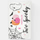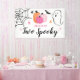 ¡Dos Espeluznantes! Cartel de 2° cumpleaños de fiesta de Halloween. Cartel de cumpleaños espumoso con calabazas rosas, estrellas y arañas.