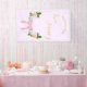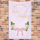 ¡Ella es de dos fantasías! Colección de cumpleaños con un delgado arco rosado entre una corona de rosas. Tipografía con escritura dorada sobre fondo púrpura pastel