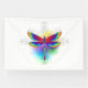 Luminosa, arco iris, libélula poligonal sobre fondo blanco, pintada con acuarela.