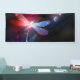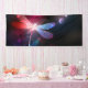 Flor, vuelo, libélula roja, con alas transparentes y detalladas sobre fondo oscuro, nocturno y luminoso con plantas tropicales y luciérnagas. Lluvia roja.