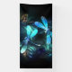 Dos libélulas transparentes, luminosas, turquesas, dibujadas de forma artística sobre el fondo nocturno con algas lacustres luminosas y luciérnagas. Flauta de dragón resplandeciente.