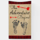 Estandarte de ducha de bebé leñador con huellas de bebé lindas en un papel kraft y fondo a cuadros de búfalo. Puedes agregar texto para personalizar este estandarte de ducha de bebé de aventura de leñador rústico.
