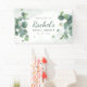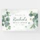 Gran decoración de paredes fiestas y banner de bienvenida para una moderna ducha de matrimonio. Con un tema botánico de eucalipto verde, blanco con fondo de color de agua, y el nombre en letra de guión se puede cambiar fácilmente haciendo clic en el botón "Personalizar" de arriba.