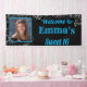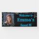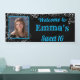 Banner elegante y femenino con brillantes purpurinas plateados, esquinas de remolinos decorativas y confeti brillante. Personaliza para usar para Graduación, Bat Mitzvah, Quinceanera, Aniversario y Compromisos, solamente cambia el texto. Todos los elementos de diseño se pueden mover y cambiar de tamaño para ajustarse a la mayoría de los tamaños de los banners. El marco se puede dimensionar para que se ajuste a la foto. El fondo negro, el texto y el color del marco pueden cambiarse a su gusto.