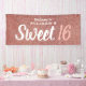 Sorpréndala y decora con esta pancarta de Monograma Rosa de Oro de la Dulce Fiesta del Cumpleaños 16. El diseño moderno tiene un fondo de color rosa falso purpurina y "bienvenido", seguido por el nombre personalizado y "dulce 16" en las letras en blanco y rosa. Haga clic en la opción personalizar plantilla e introduzca el nombre.