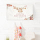Bienvenidos a sus invitados con estilo con este encantador banner de Baby Shower de Dulce Calabacita Otoño Rosa Floral Niña. Con calabazas de acuarela, flores rosadas y ropa de bebé en una cuerda de ropa colgante, este diseño boho rústico de otoño establece un tono cálido y acogedor para su celebración. Personalice al instante para crear un recuerdo sincero para el día especial de su pequeña calabacita.