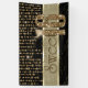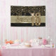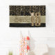 Esta elegante pancarta de Sweet Sixteen presenta un gigante falso purpurina dorado '16' y una cinta sobre un fondo negro de satén adornado con un patrón de joyas colgadas. Agregue un nombre utilizando la plantilla proporcionada. Busque ID260 para ver otros productos con este diseño.