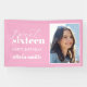 Pancarta minimalista dulce de dieciséis años con tu foto favorita y tipografía simple y moderna de color rosa.