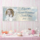 Hermoso banner Winter Wonderland para su dulce dieciséis. Grandes copos de nieve sobre un fondo azul plateado para tu foto favorita. Los copos de nieve con aspecto de cristalino se acentúan con estrellas brillantes. SE IMPRIMEN TODOS LOS ELEMENTOS DE DISEÑO.