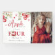 Celebra el cuarto cumpleaños de tu hijo con un toque de fantasía y mucho amor. Nuestros banners de acuarela con tema de manzana son la forma perfecta de anunciar el día especial de tu pequeño. Con tu foto favorita, jugosas manzanas rojas, un toque de corazones y texto diseñado de manera moderna, estos banners de cumpleaños seguramente capturarán tu corazón como tu 'manzana de los ojos' captura el de ellos.