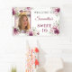 Hermoso banner de ramo floral rosa y burgundy para tu fiesta de Sweet Sixteen. Agrega tu foto al marco burgundy, personaliza el texto y la fuente a tu gusto. El color de fondo que tengo en blanco se puede cambiar a cualquier color del arcoíris.