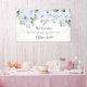 Hermosos rosas crean una impresionante pancarta de bienvenida con ducha de novia. Un magnífico arreglo de rosas azules, así como una variedad de viñas y hojas, lo convierten en un diseño floral muy moderno. Tiene un poco de vibración de la Moda Boho, debido a las viñas colgantes y las hojas. Este cartel de ducha de novia forma parte de la colección botánica Blue Rosa. Contiene plantillas de coordinación que permiten crear fácilmente una ducha de novia única y personalizada. Debería ver un enlace en esta página.