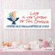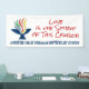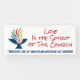 TVUUC - "El amor es el espíritu de esta iglesia" en un rico color rojo - Iglesia Unitaria del Valle de Tennessee - Knoxville, Tennessee - el diseño presenta el llamativo logo de cáliz con sus llamas multicolor