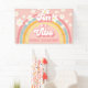 ¡Diez es un Vibe! Banner de 10 años inspirado en la retro con fuentes y colores de estilo de los años 70, arcoiris y margaritas en rosa