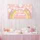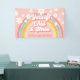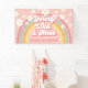 ¡Jóvenes Salvajes y Tres! Banner de 3er cumpleaños inspirado en el retro con fuentes y colores de estilo 70, arcoiris y margaritas en rosa