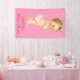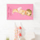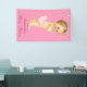 Bandera rubia rosada elegante personalizada de la fiesta de bienvenida al bebé del chica del vintage. Un ilustracion hermoso del vintage de una niña rubia linda y adorable con los pendientes y collar elegante de la perla, un pañal rosado bonito y un arco rosado en su pelo en un fondo rosado elegante con el texto adaptable de las rosas fuertes en una fuente adornada de lujo. Si usted necesita alguna ayuda que modifica su producto para requisitos particulares me entra en contacto con por favor a través de mi tienda y me placeré ayudar. Tengo productos a juego en mi tienda.