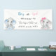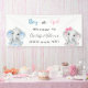 Por un sexo revelan fiesta. Un fondo blanco moda. Decorada con globos purpurina y azul, rosa y blanco, un elefante de bebé y una niña elefante. Personaliza y agrega el nombre de los padres. El nombre y el texto: El niño o Chica están escritos con un guión de estilo escrito a mano
