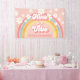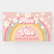¡Nueve es un Vibe! Banner inspirado en el retro para el noveno cumpleaños con fuentes y colores de estilo 70, arcoiris y margaritas en rosa